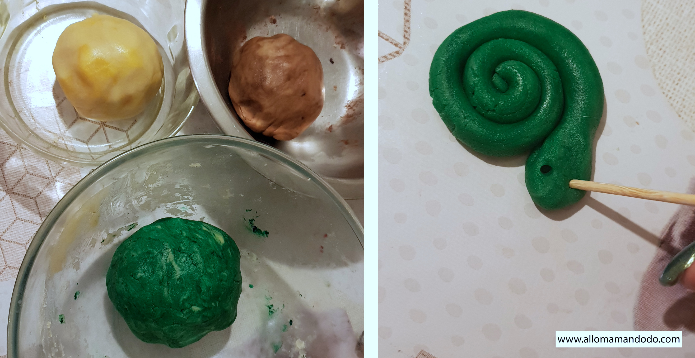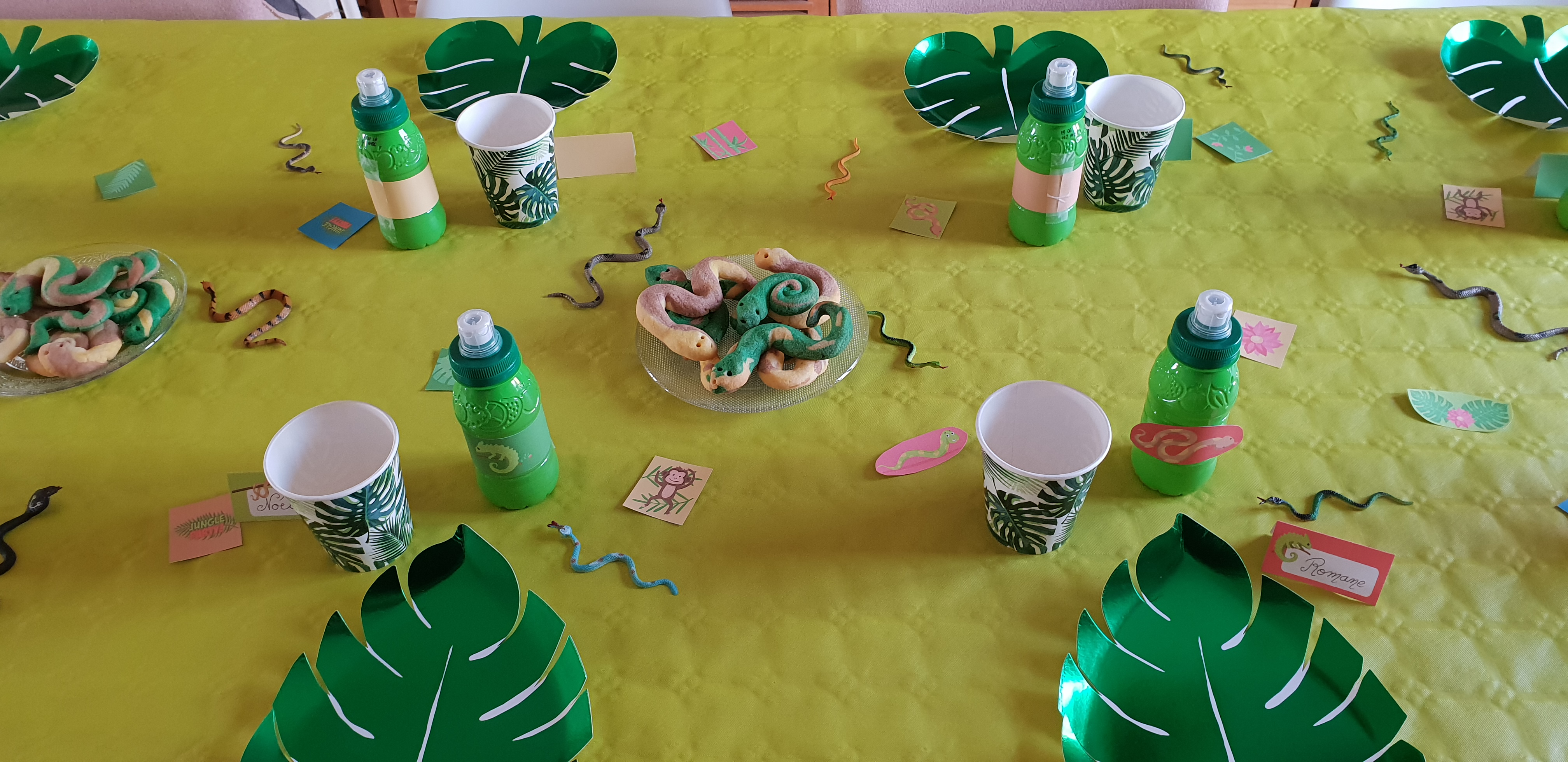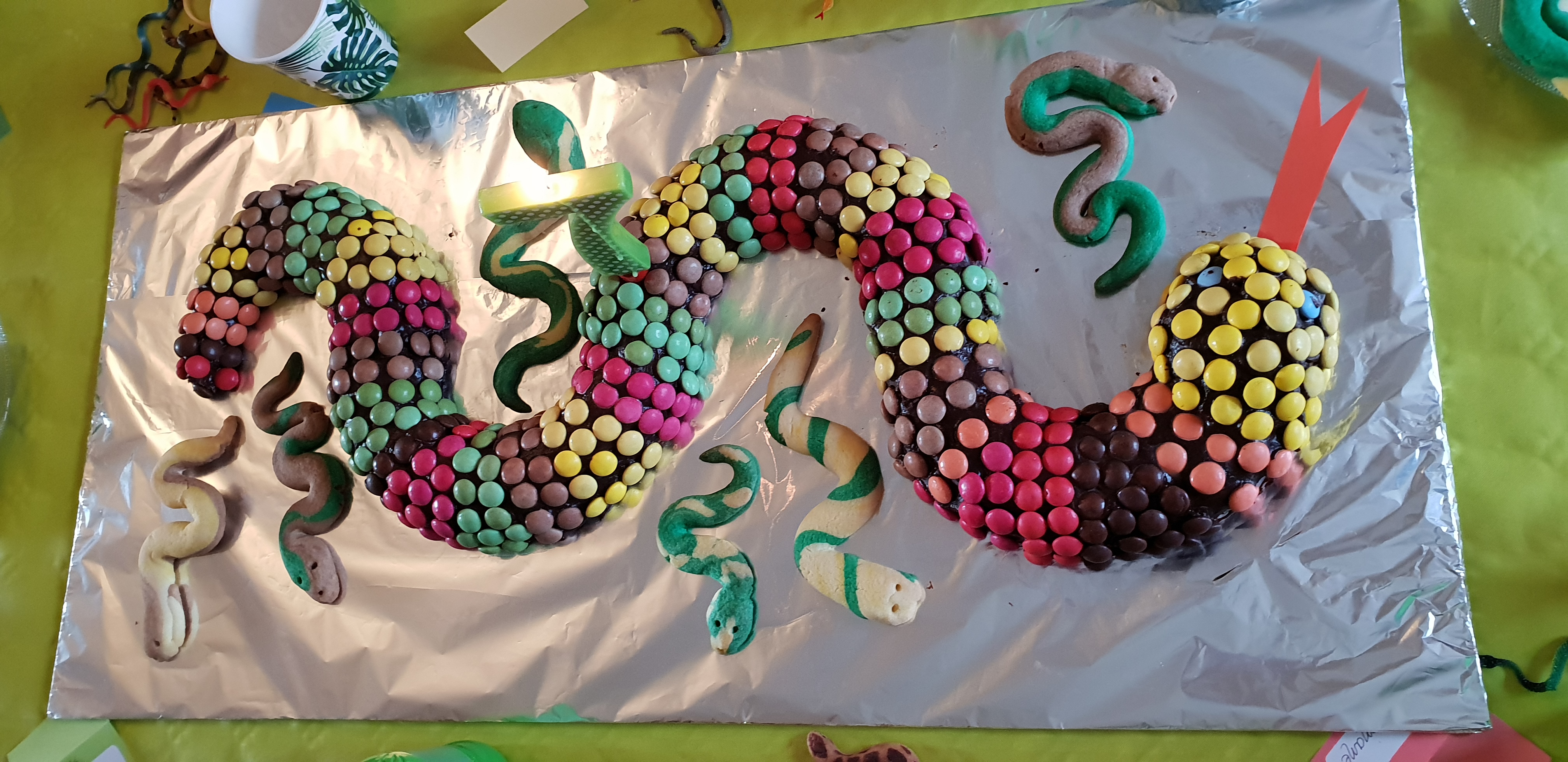 Pour l’anniversaire de PtitePomme, sur le thème JUNGLE, j’ai voulu lui créer des sablés marrants en forme de serpents!